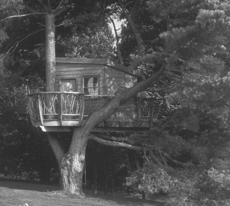 La casa del árbol tienen un espacio al que se puede llegar mediante unas escaleras fijas, una escalera de mano fija o una escala de cuerda.